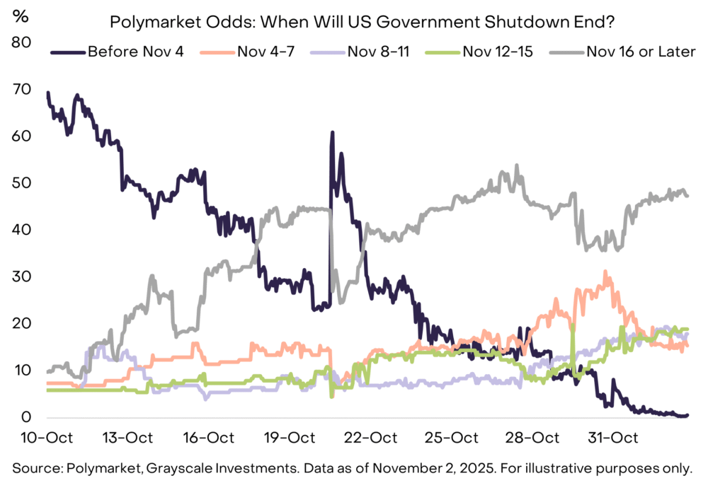 - U.S. shutdown fueled volatility, but crypto innovation accelerated.